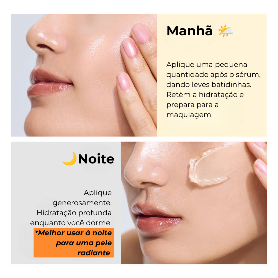 Sua textura em gel elástico garante hidratação rica e sensação leve, tornando a aplicação agradável e adequada para todos os tipos de pele.